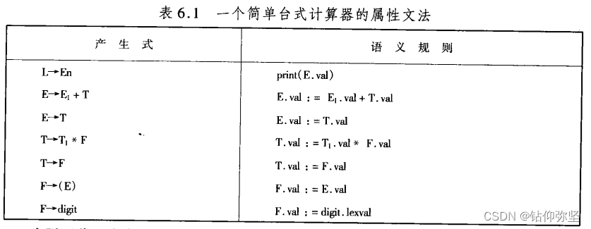 最后,包含开始符号L的产生式L→En对应的语义规则打印出通过E得到的表达式的值。