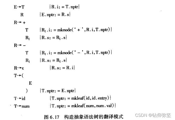 ② 按照图6.17所示的翻译模式,构造该表达式的抽象语法树。
