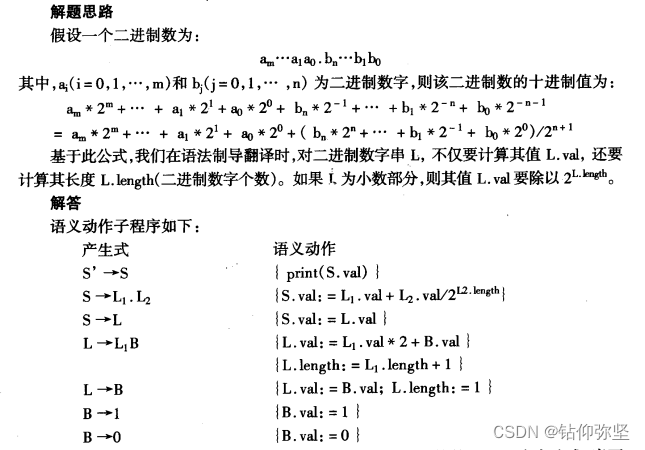 7.下列文法由开始符号S产生一个二进制数,令综合属性val给出该数的值: