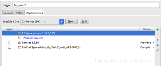通过 File>Project Structure…>Project Settings>Modules 添加 Jar 依赖,如下图: