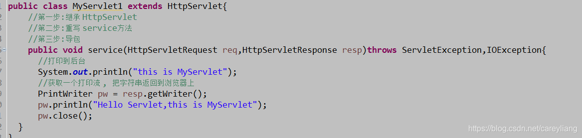 1、编写一个Java类,继承servlet接口。HttpServlet