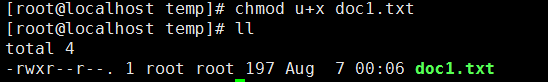 rwx:代表文件所有者(u表示)权限,这里是root,root对该文件拥有读写执行权限。