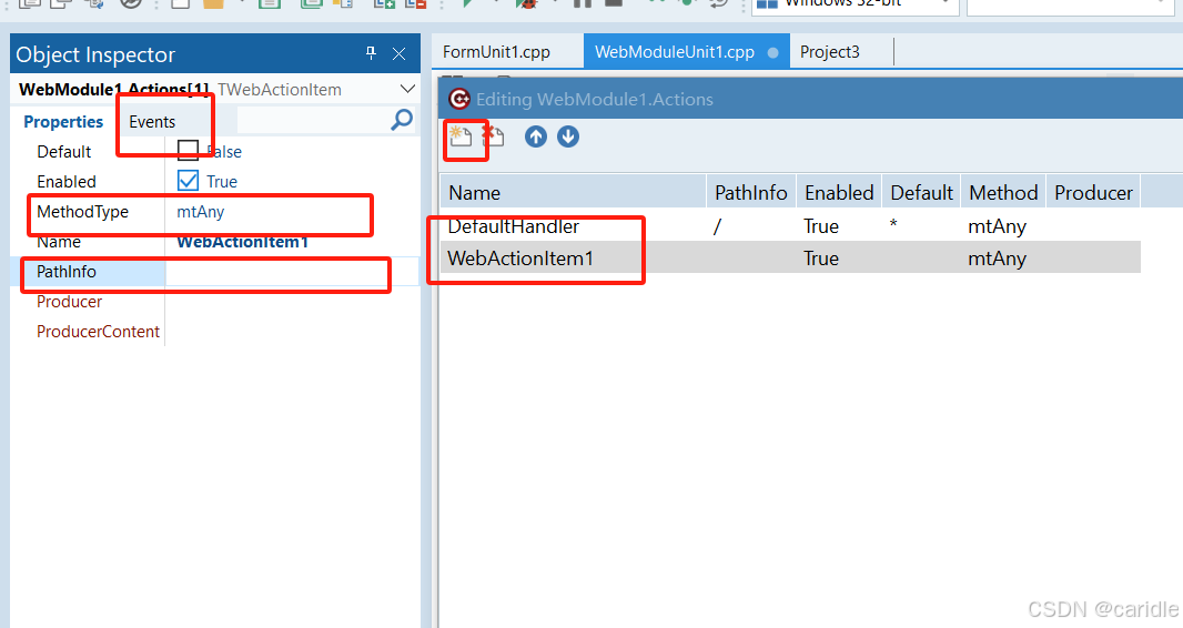 通过MethodType选择相应的动作,Pathinfo是路径信息,Event中的OnEvent产生下面的方法,当然是webmoduleunit1.cpp中。