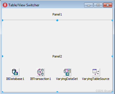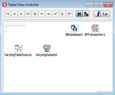 - 在 "Panel1" 上放置一个 TDBNavigator 以导航数据库记录。将 DataSource 设置为 "VaryingTableSource"。TDataSource 作为 TIBDataSet 和数据感知控件之间的接口。