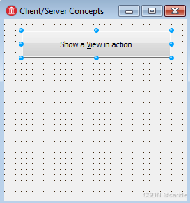 在表单顶部放置一个 TButton,并按下图所示调整大小。将 Caption 设置为 "Show a &View in action",这样按 ALT+v 就相当于点击 TButton。将 Name 设置为 "BtnViews"。