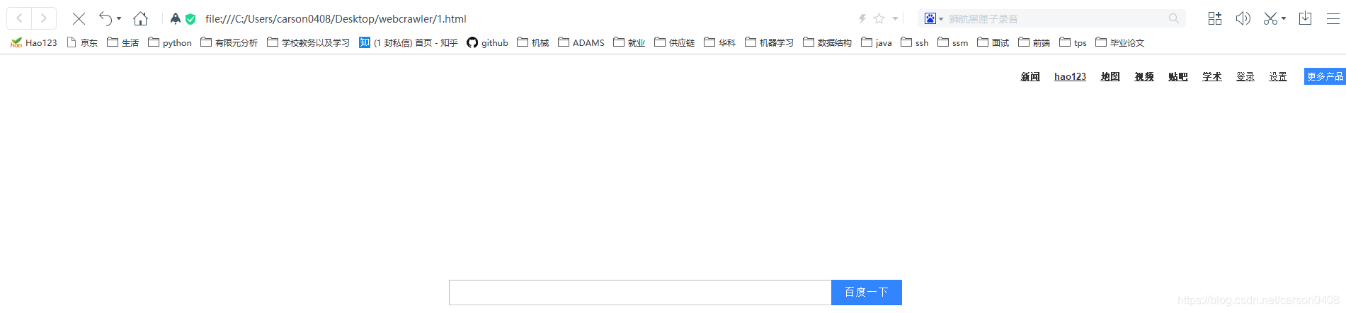 4.以写入的形式打开本地一个文件:fhandle = open("C:/Users/carson0408/Desktop/webcrawler/1.html","wb")