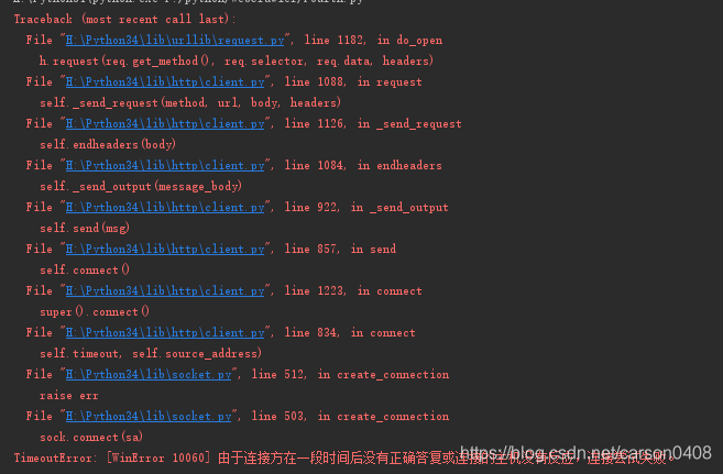 如果重复执行以上代码之后,就会出现如下报错,那是因为该代理ip被该博客的网站服务器屏蔽了。