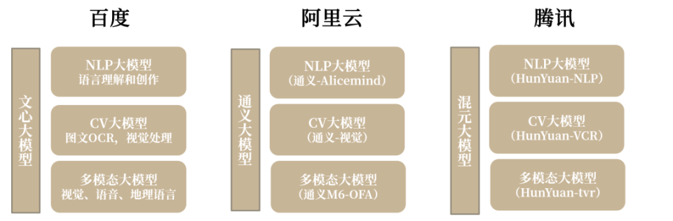 龙头企业一般人力、财力资源较为宽裕,故而可以考虑训练自己的基础大语言模型。国内如百度、腾讯、阿里云等都正在提炼自己的通用大语言模型。