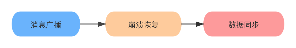 Zab 的具体流程可以拆分为消息广播、崩溃恢复和数据同步三个过程,下面我们分别进行分析。