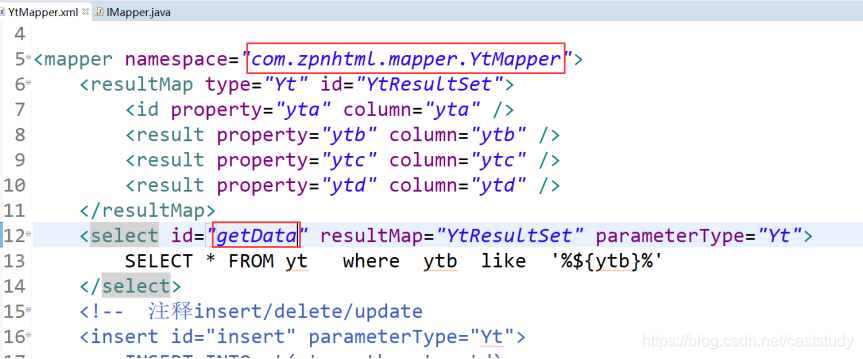 写接口(昨天用"com.mybatis1.mapper.YtMapper.insert")