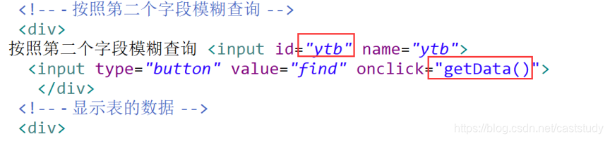 按照第二个字段模糊查询 <input id="ytb" name="ytb"> <input type="button" value="find" onclick="getYt()">