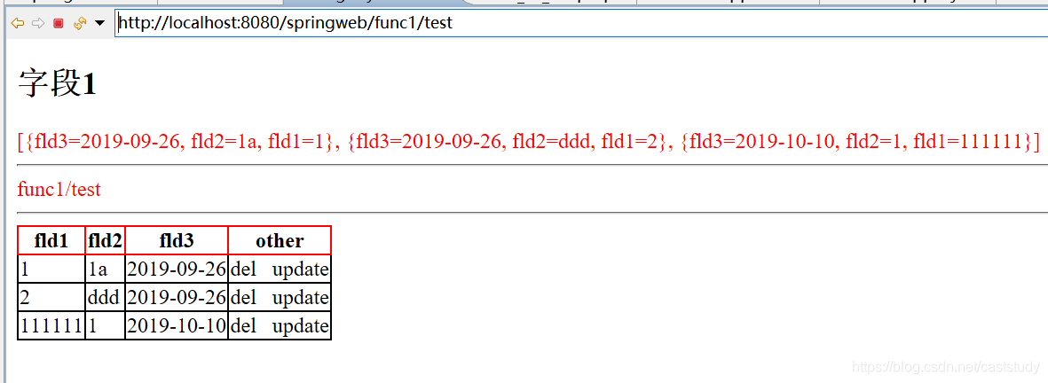 <td th:text="${func1.fld3}"></td> <td >del update </td> </tr></tbody></table>