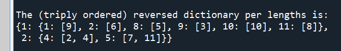 print('\nThe (triply ordered) reversed dictionary per lengths is: ')