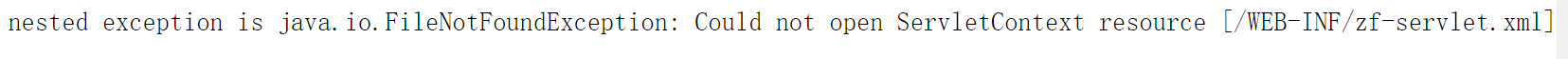 错误原因,Spring默认找核心控制器的 名字-servlet.xml配置文件,找不到 zf-servlet.xml配置