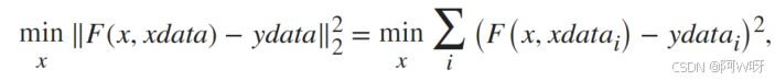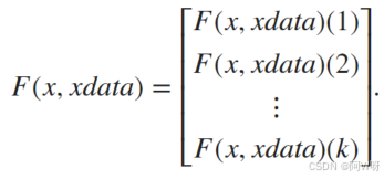 给定输入数据 xdata,观察到的输出 ydata,其中 xdata 和 ydata 是矩阵或向量,F (x, xdata) 是与 ydata 大小相同的矩阵值或向量值函数。