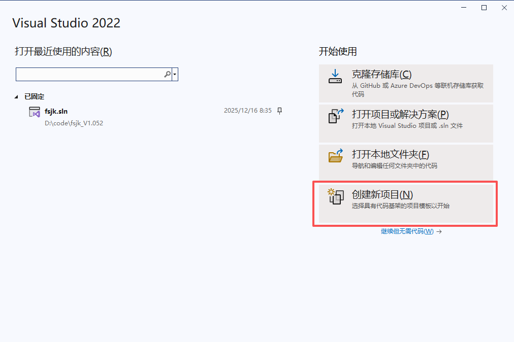 打开 VS2022 → 点击「创建新项目」→ 搜索