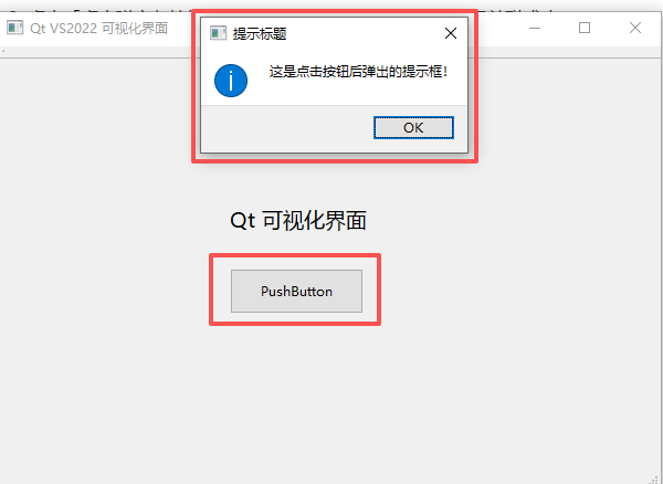 | 修改属性 | 选中控件 → 右侧「Property Editor」修改属性:- 按钮:text 改为「点击弹窗」,objectName 改为 btnShowPopup;- 标签:text 改为「Qt 可视化界面演示」,font 设为「微软雅黑,14 号」; |