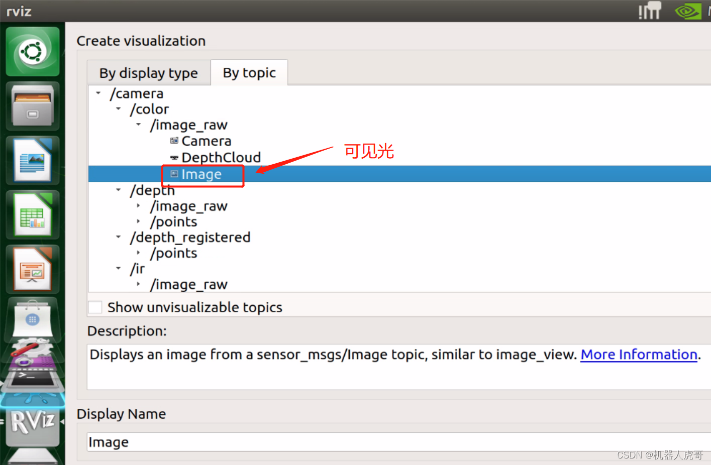 依次进行以下操作:Add -> By topic -> 选择对应的image即可