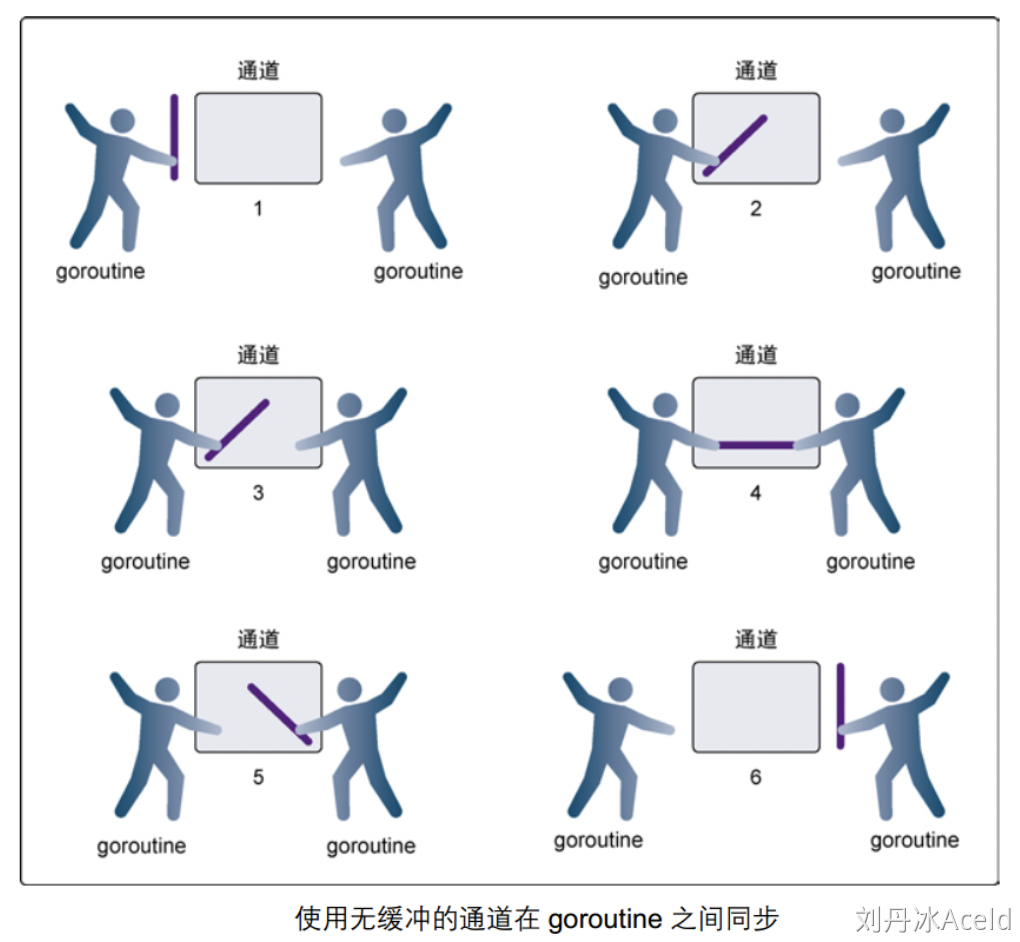 这种类型的通道要求发送goroutine和接收goroutine同时准备好,才能完成发送和接收操作。否则,通道会导致先执行发送或接收操作的 goroutine 阻塞等待。