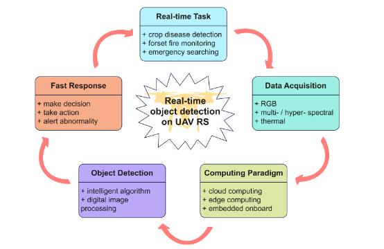实时性的重要性:文章指出,在许多关键应用场景中(如灾害响应、交通监控和农业),需要实时(real-time)获取和处理数据以进行及时决策。这使得基于无人机遥感的实时目标检测成为一个重要的研究方向。