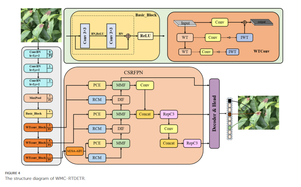 传统模型(如YOLO)在光线变化、遮挡多的茶园中容易“眼花”,而基于RT-DETR的混合编码器擅长多尺度特征提取,哪怕病斑藏在层层叠叠的叶片之间,也能精准识别。