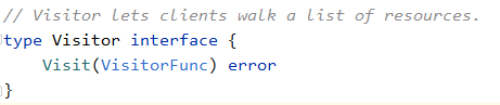 该段代码所做的事情就是将命令行接收到的参数转化为一个资源的列。它也负责创建一个可以用来迭代访问所有资源的Visitor结构。