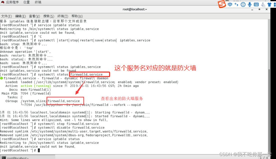 执行以上1、3命令,关闭防火墙。下图是防火墙服务名位置
