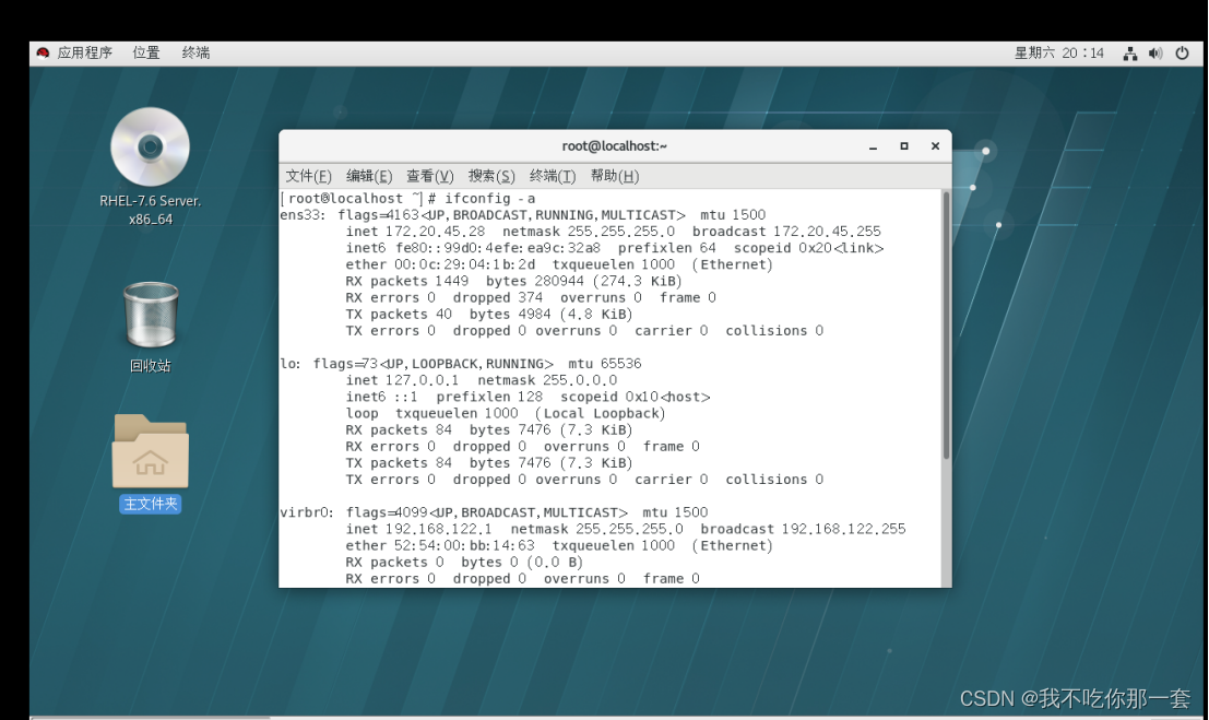 图中红框vibr0为当前虚拟网卡的地址。第一个ens33为物理网卡(名字未必都是ens33,随机生成可修改)