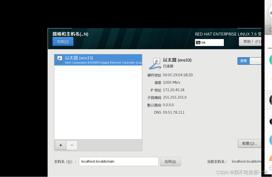通过上图可看出之前在安装系统时设置的地址(下图),并没有在重启系统后生效