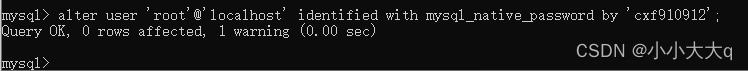 alter user 'root'@'localhost' identified with mysql_native_password by '密码';