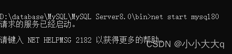 无法启动,然后发现是服务名称没有输对,服务名称为mysql80