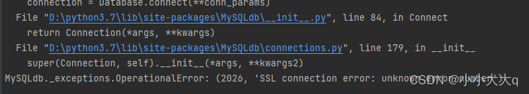 2、执行数据迁移命令(python manage.py migrate)时报错:MySQLdb._exceptions.OperationalError: (2026, 'SSL connection error: unknown error number')