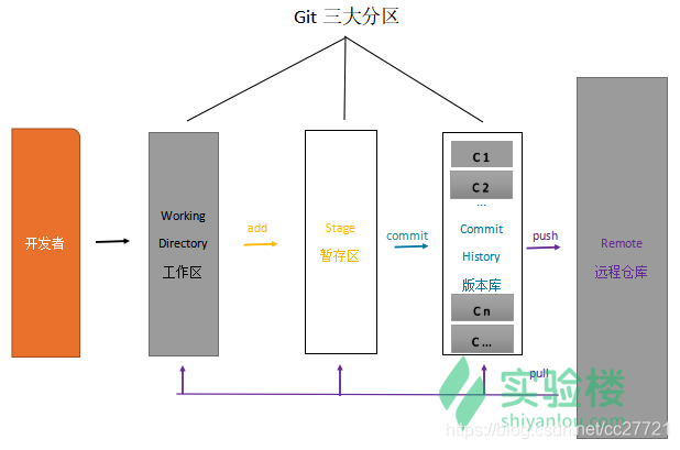 3、Git 本地仓库有三大区域:工作区、暂存区、版本区。