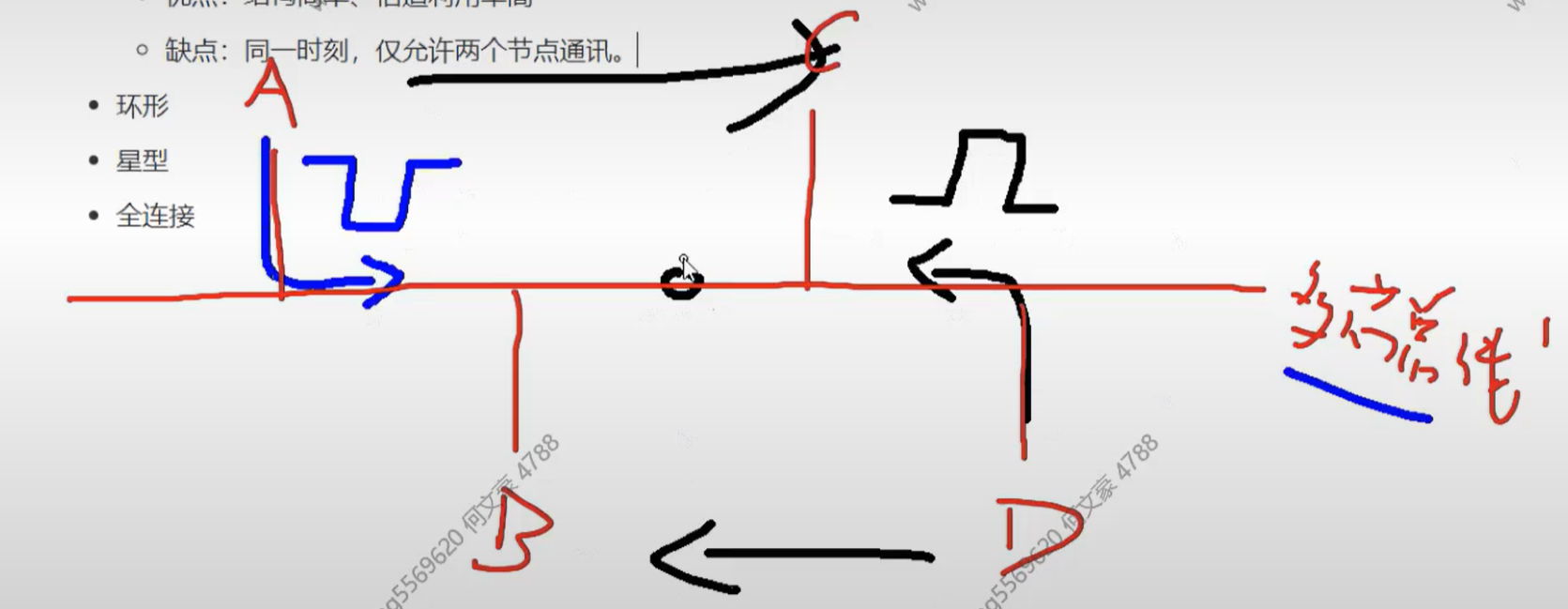 A给C发消息,D给B发消息,两消息在总线相遇,会造成能量的抵消