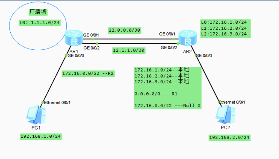 [r2]ip route-static 0.0.0.0 0 12.0.0.1