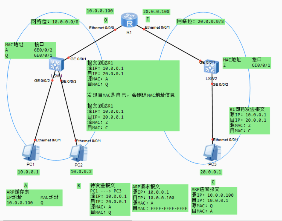 交换机内存在MAC地址表:会记录下交换机收到的数据中的源MAC地址与接收该数据的接口的对应关系;每一次收到报文都需要学习;表单中的每一个表项,都存在一个老化时间,为5分钟,即300秒。