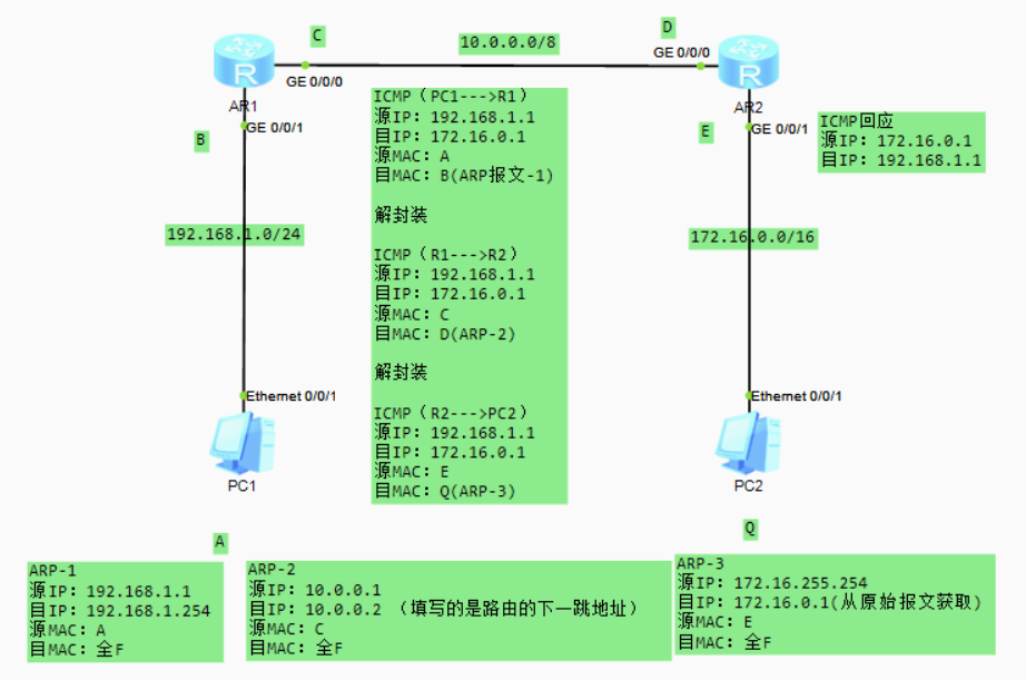 一条用来兜底的路由;当设备存在缺省路由时,如果其他任何路由都没有匹配成功数据报文,则该 数据包会被路由器按照缺省路由的指示进行数据转发。