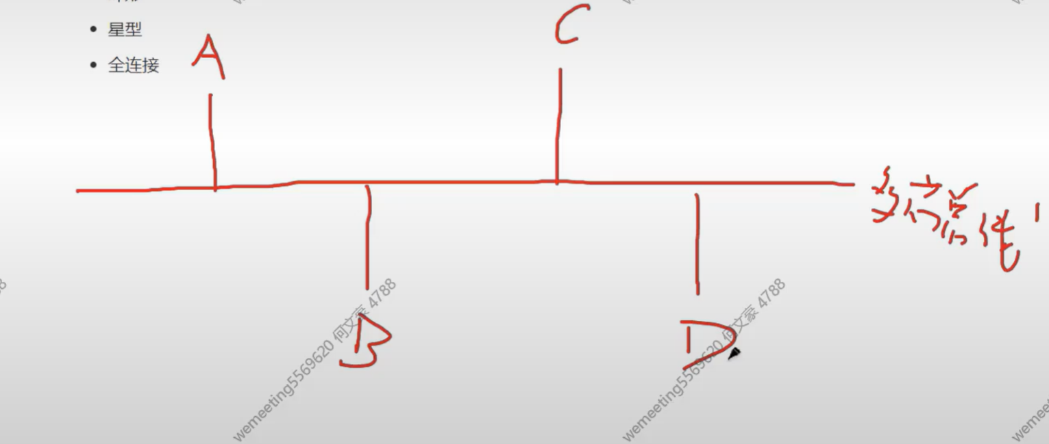 全连接 --- 属于星型的变种,任意一个节点都可以是中心节点