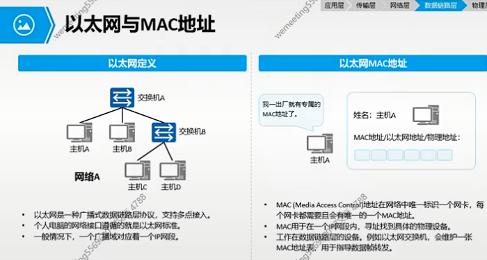 介质访问控制层 --- 控制硬件;比如将二进制转换为电流然后控制物理层输出电信号