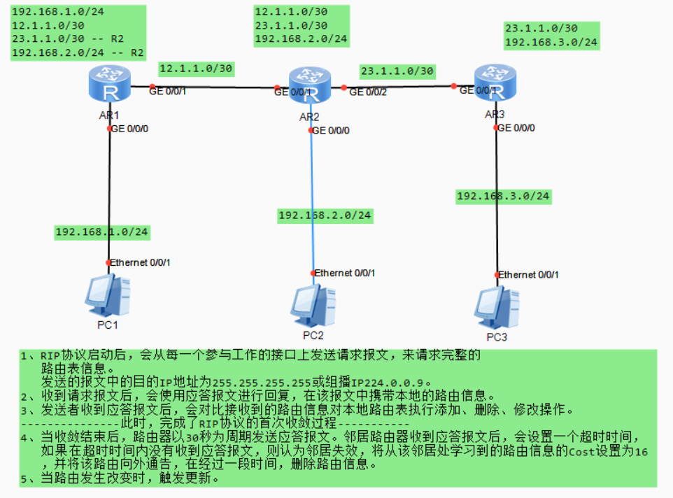 周期更新:设备没经过30秒,会将本地路由表附带在应答报文中向外发送;保活和确认。