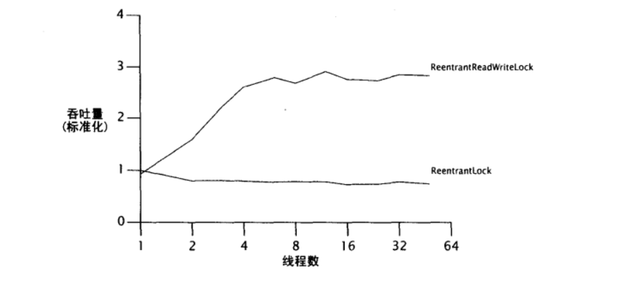 读-写锁允许多个读者并发访问被守护的对象,当访问多为读取数据结构的时候,它具有改进可伸缩性的潜力。