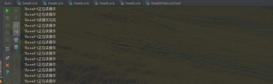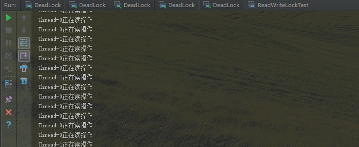 可以看到要线程Thread0读操作完了,Thread1才能进行读操作。明显这样性能很慢。