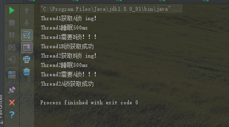 System.out.println(Thread.currentThread().getName() + "需要B锁!!!");