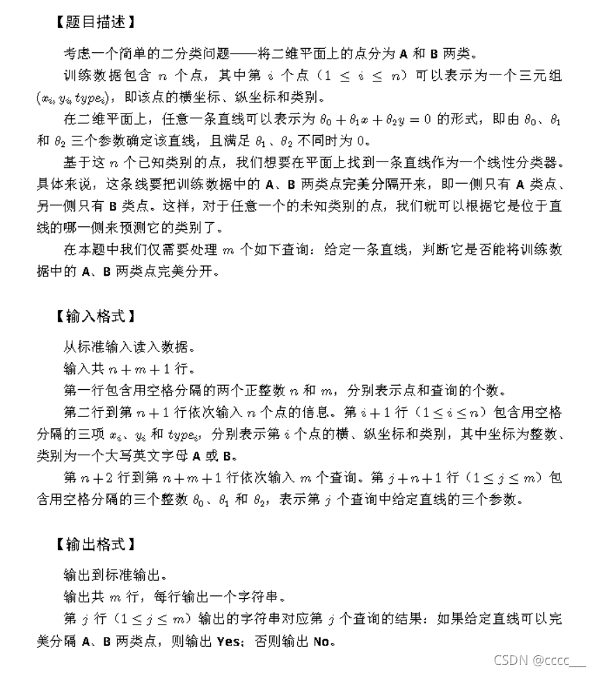 样例输入2 Data 样例输出2 Data 样例2说明 该位置记录经过了高危区域,但最多只有连续两个时刻位于其中,不满足逗留条件。 评测用例规模与约定 全部的测试点满足 1≤n≤20,1≤k≤t≤103,所有坐标均为整数且绝对值不超过 106。 |
