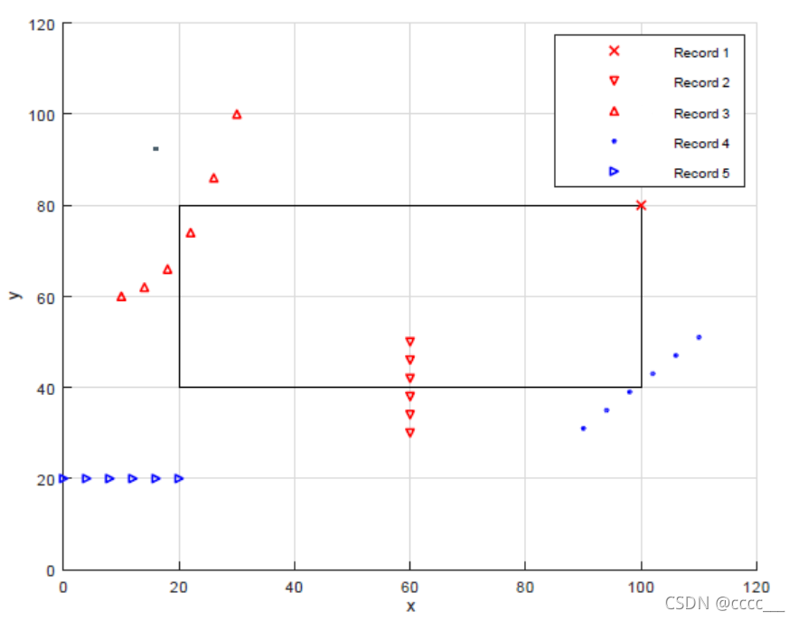 | 问题描述: | 题目背景 某地疫情爆发后,出于“应检尽检”的原则,我们想要通知所有近期经过该高危区域的居民参与核酸检测。 问题描述 想要找出经过高危区域的居民,分析位置记录是一种简单有效的方法。 具体来说,一位居民的位置记录包含 t 个平面坐标 (x1,y1),(x2,y2),⋯,(xt,yt),其中 (xi,yi) 表示该居民 i 时刻所在位置。 考虑某位居民的位置记录,如果其中某个坐标位于矩形内(含边界),则说明该居民经过高危区域;进一步地,如果其中连续 k 个或更多坐标均位于矩形内(含边界),则认为该居民曾在高危区域逗留。需要注意的是,判定经过和逗留时我们只关心位置记录中的 t 个坐标,而无需考虑该居民在 i 到 i+1 时刻之间位于何处。 给定高危区域的范围和 n 位居民过去 t 个时刻的位置记录,试统计其中经过高危区域的人数和曾在高危区域逗留的人数。 输入格式 输入共 n+1 行。 第一行包含用空格分隔的七个整数 n、k、t、xl、yd、xr 和 yu,含义如上文所述。 接下来 n 行,每行包含用空格分隔的 2t 个整数,按顺序表示一位居民过去 t 个时刻的位置记录 (x1,y1),(x2,y2),⋯,(xt,yt)。 输出格式 输出共两行,每行一个整数,分别表示经过高危区域的人数和曾在高危区域逗留的人数。 样例输入1 Data 样例输出1 Data 样例1说明 如下图红色标记所示,前三条位置记录经过了高危区域;