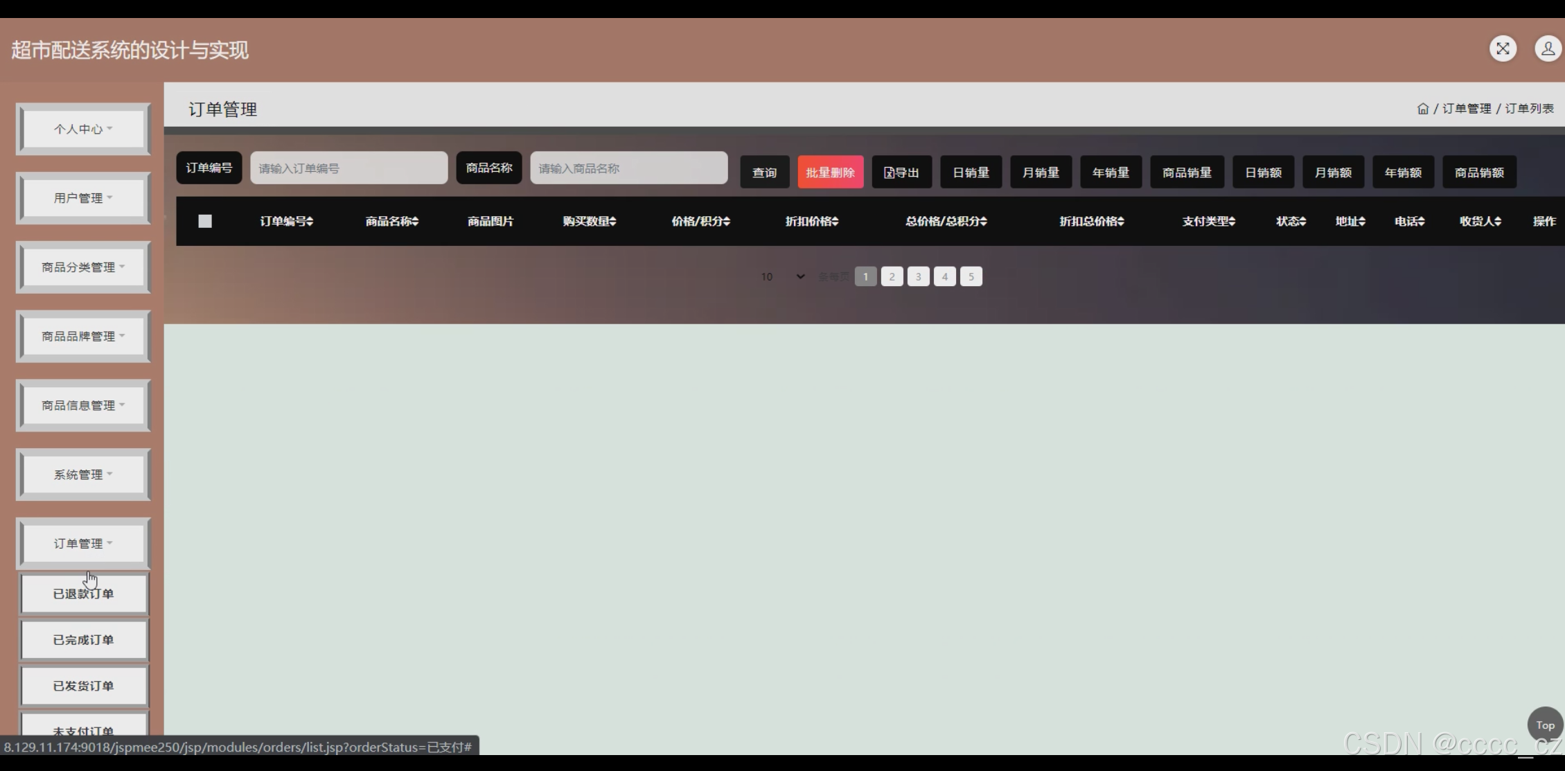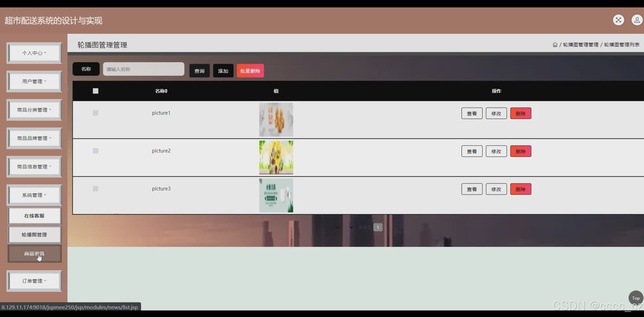JSP超市配送系统(EE250)的设计与实现将为超市提供一个高效、便捷的配送管理平台,优化配送流程,提升用户体验。通过整合用户管理、商品分类、商品品牌及商品信息等功能模块,系统将极大地提高超市配送的效率和准确性。未来,我们将继续关注市场需求和技术发展,不断优化系统功能,引入更多智能化和个性化的服务,如智能推荐、订单跟踪等,为超市配送服务提供更加全面和深入的支持。