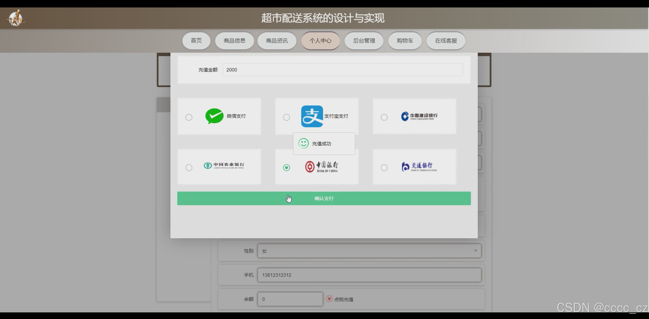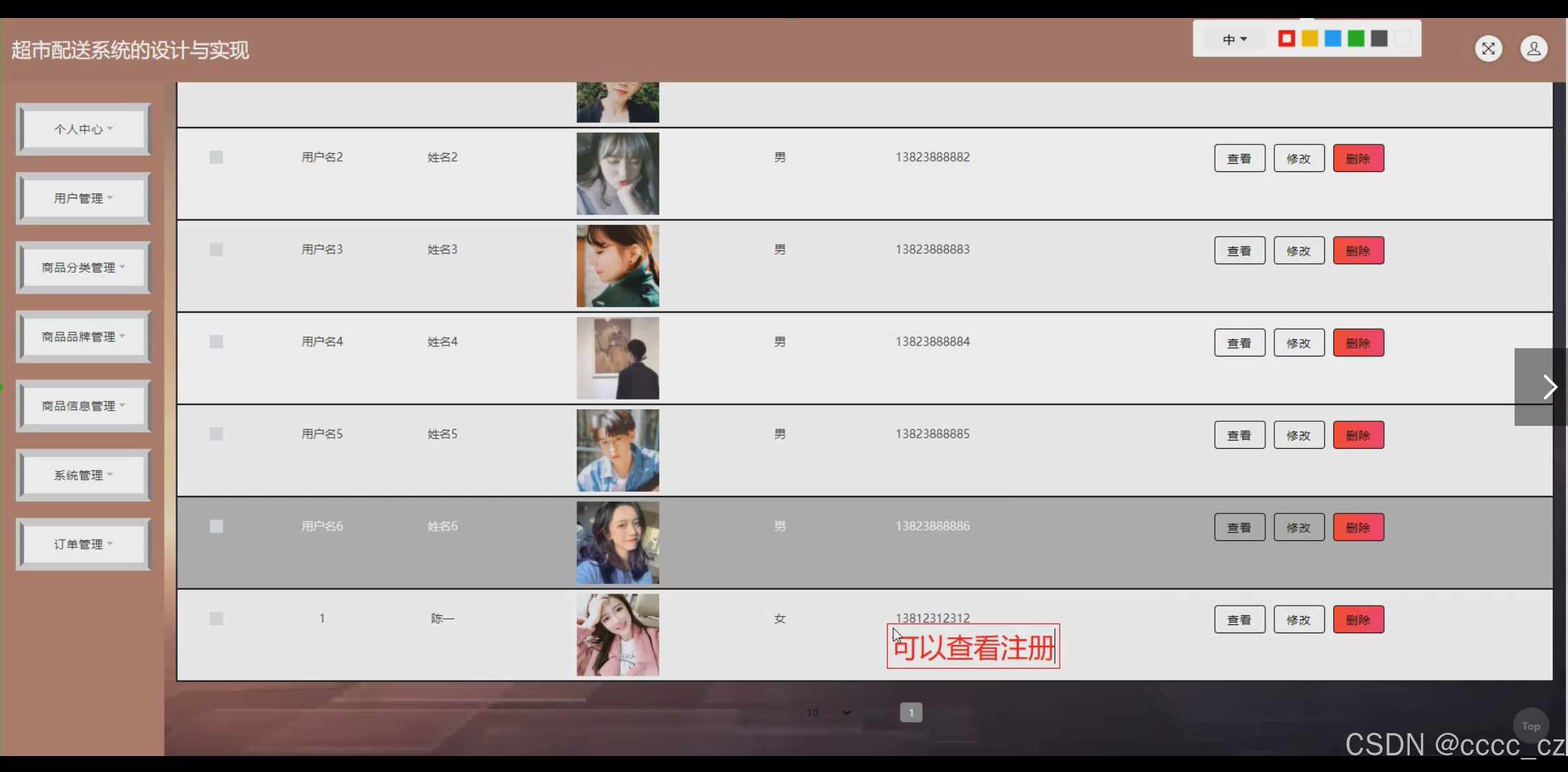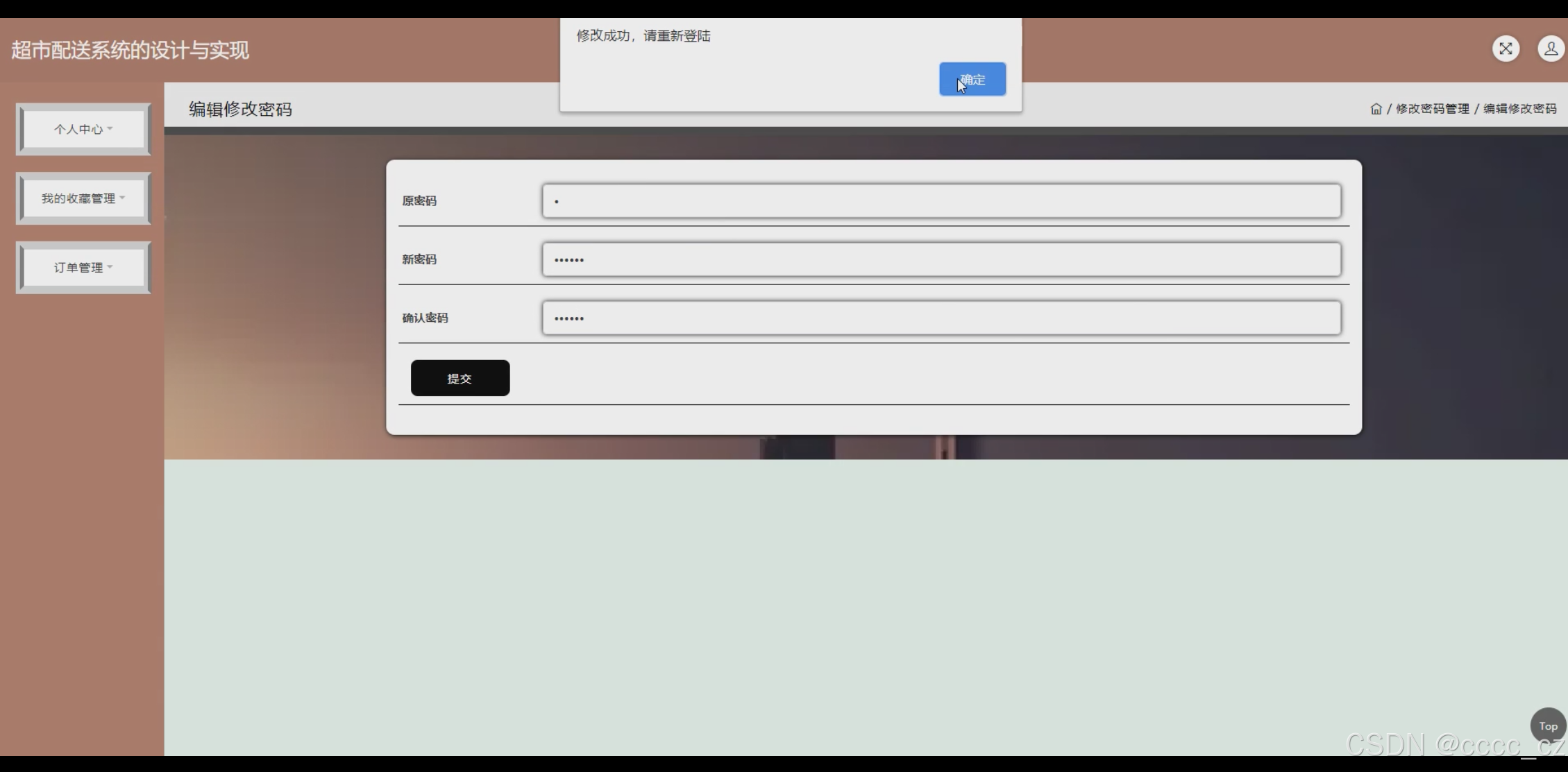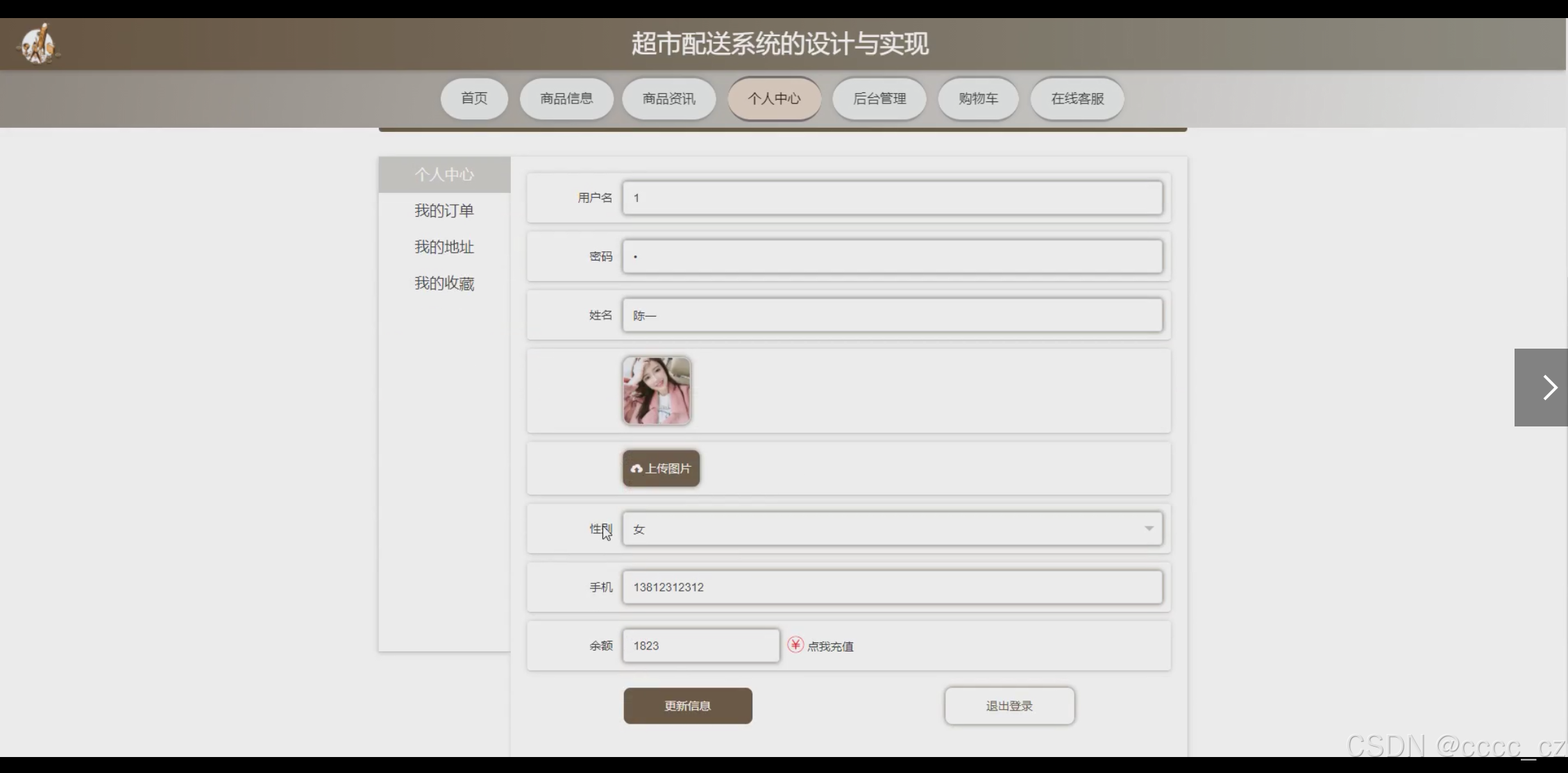 用户是超市配送服务的核心对象,该模块负责用户的注册、登录、个人信息维护以及订单管理等功能。系统需支持用户信息的安全存储与访问控制,确保用户数据的安全性和隐私性。