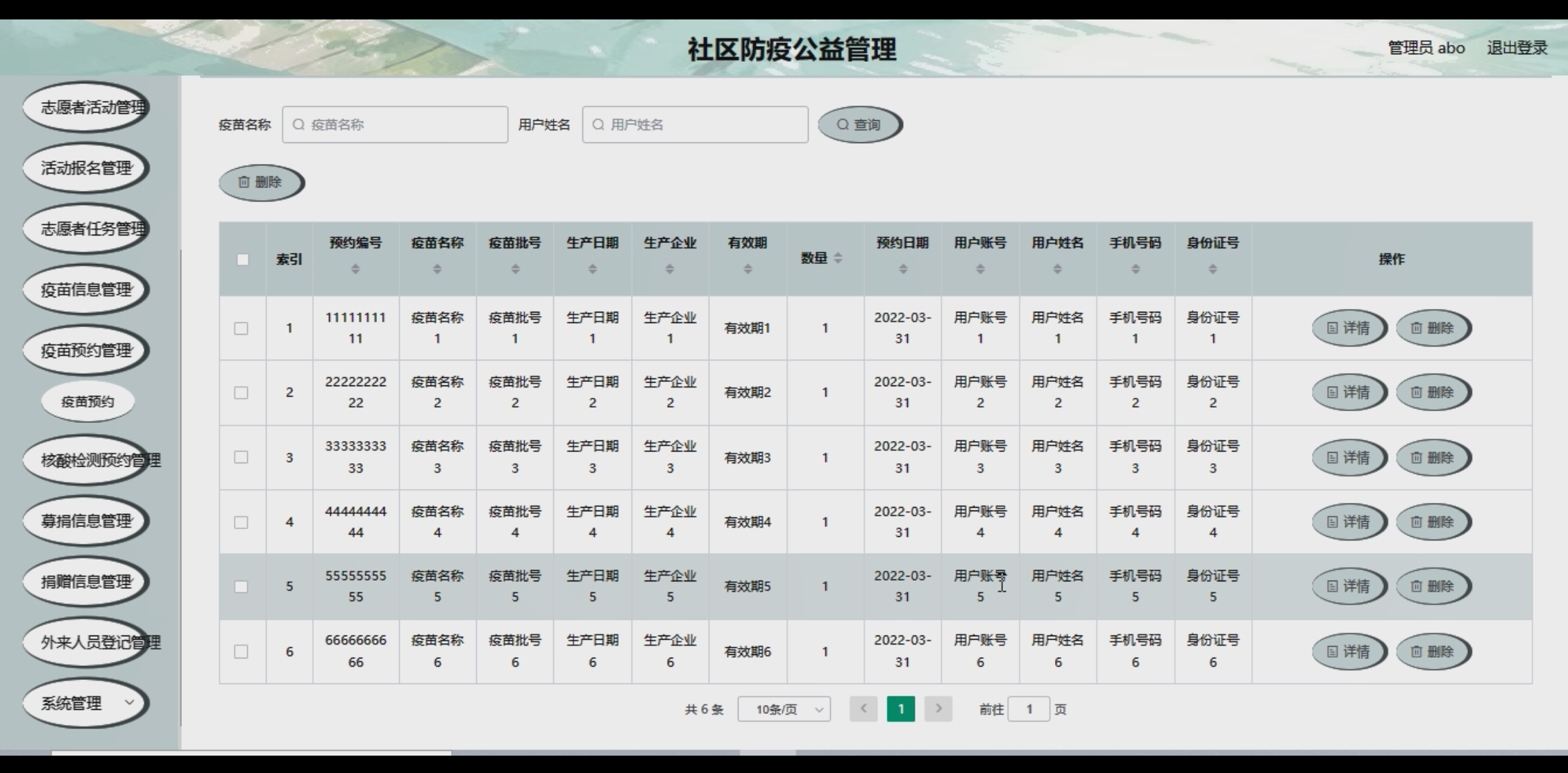 - 在线预约功能,支持疫苗与核酸检测的时间段选择。