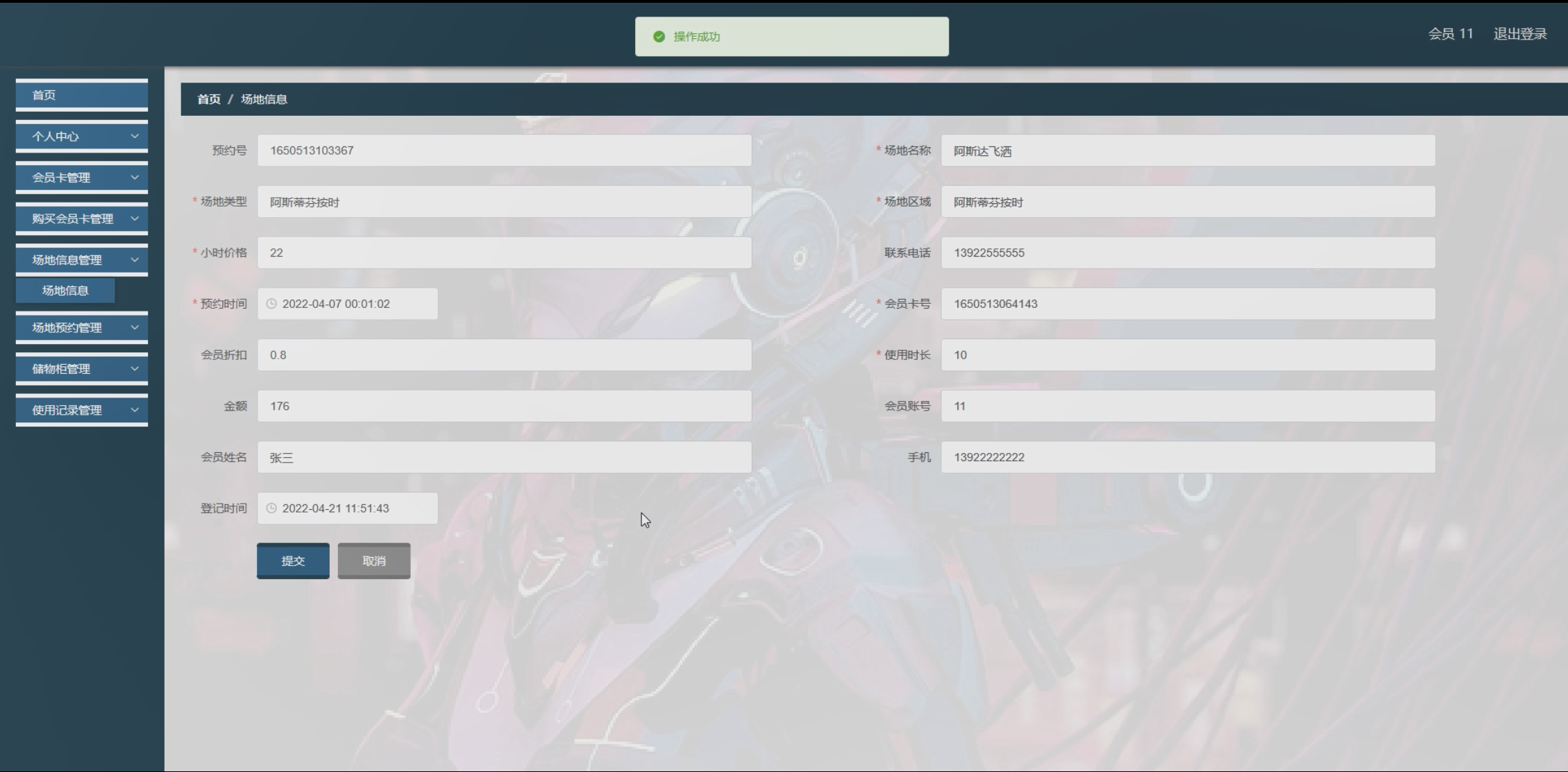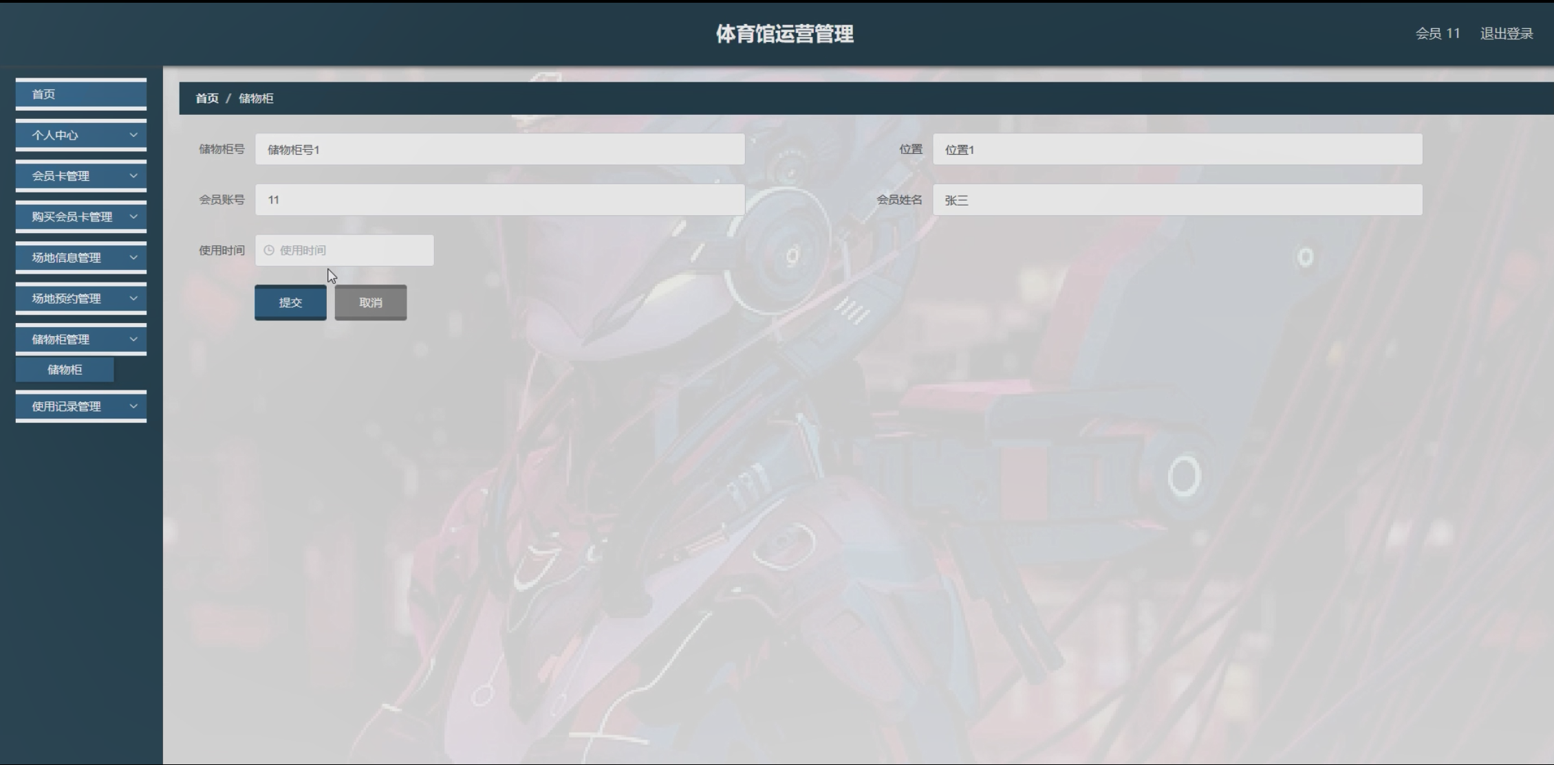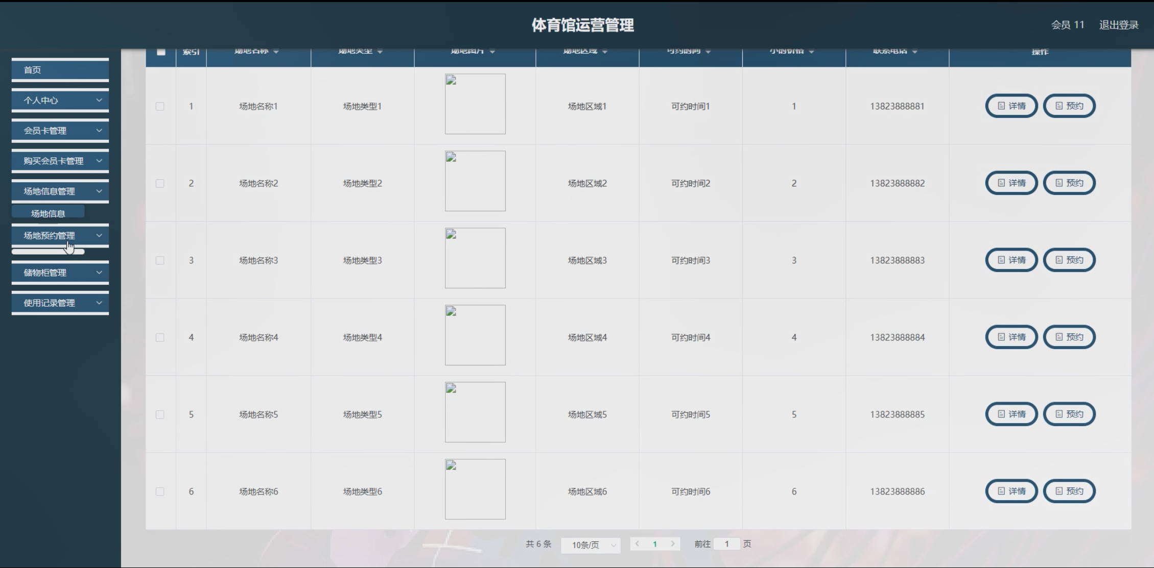 | 会员,会员卡,购买会员卡,场地信息,场地预约,储物柜,使用记录 |