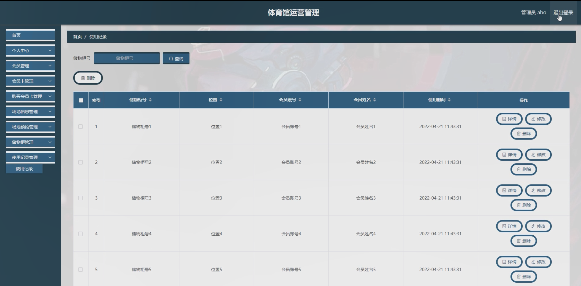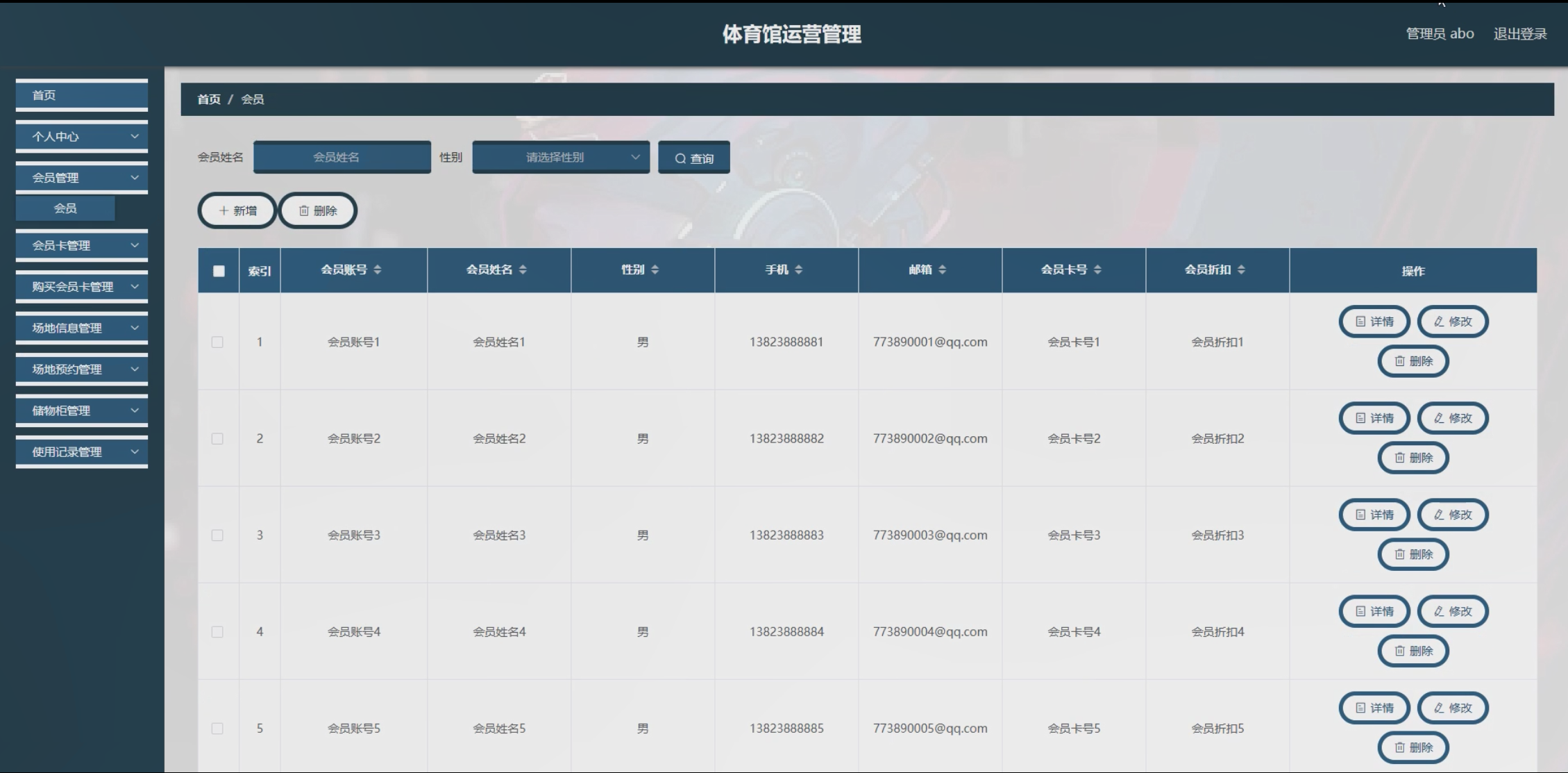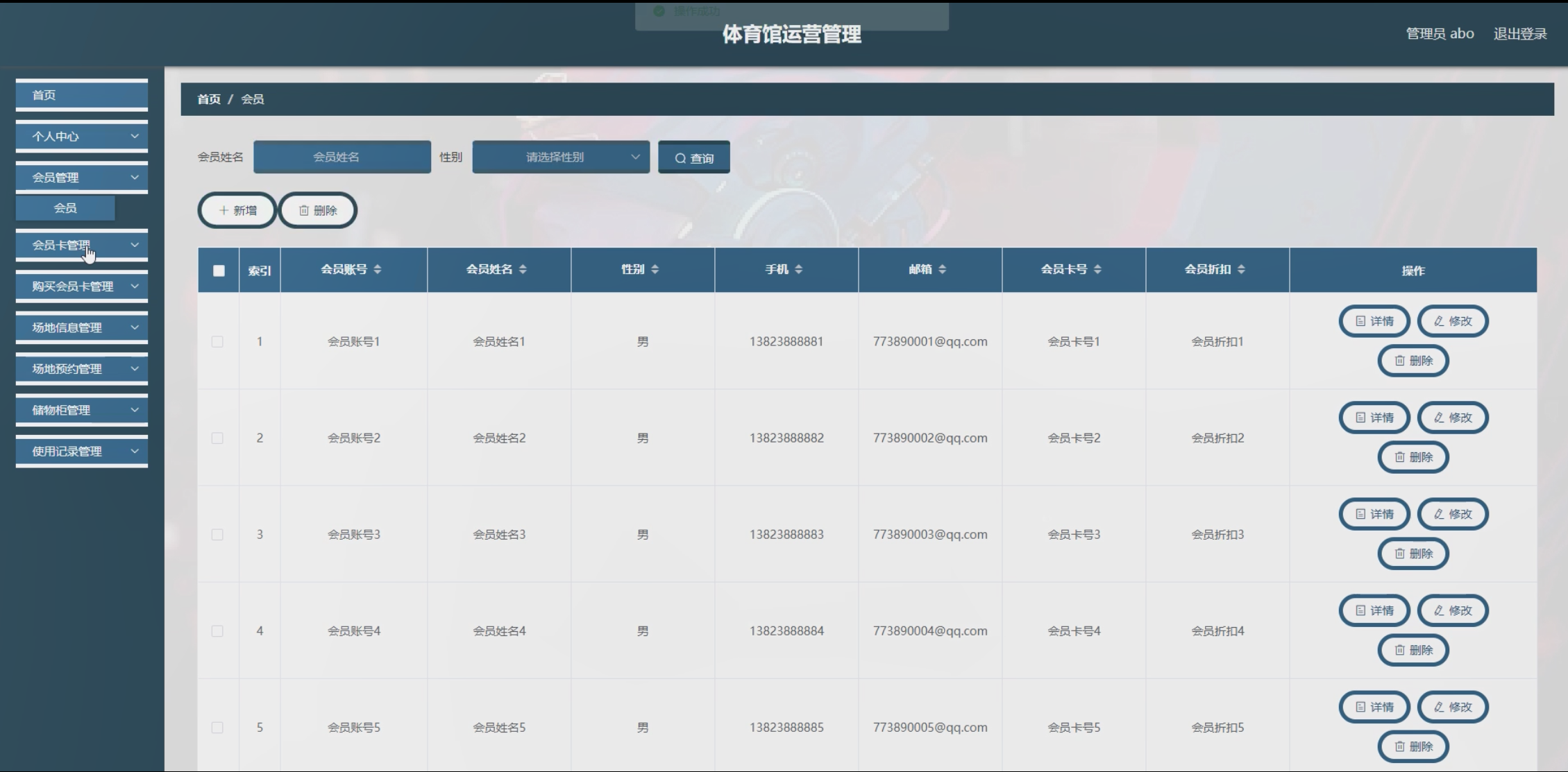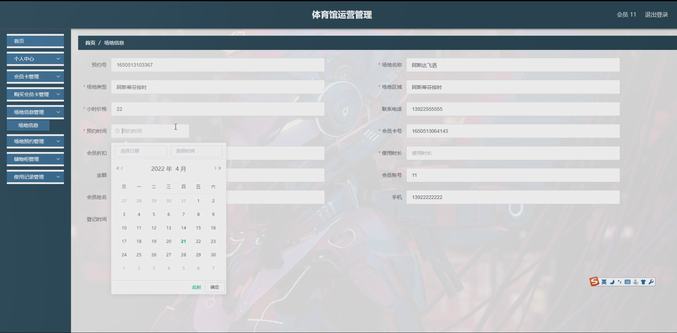 | 会员,会员卡,购买会员卡,场地信息,场地预约,储物柜,使用记录 |